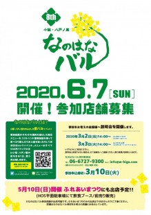 なのはなバル実行委員会が現在、6月7日に開催する近鉄奈良線・小阪駅・八戸ノ里駅を中心とした街バルイベント「第8回 小阪・八戸ノ里なのはなバル」の参加店舗を募集している。