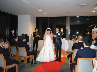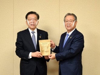 近畿大学(東大阪市小若江3)理工学部機械工学科の西籔和明教授らが11月20日、開発したプラスチック製飛沫(ひまつ)防止マウスシールド「近大マスク」の完成を立花静東大阪副市長に報告した。