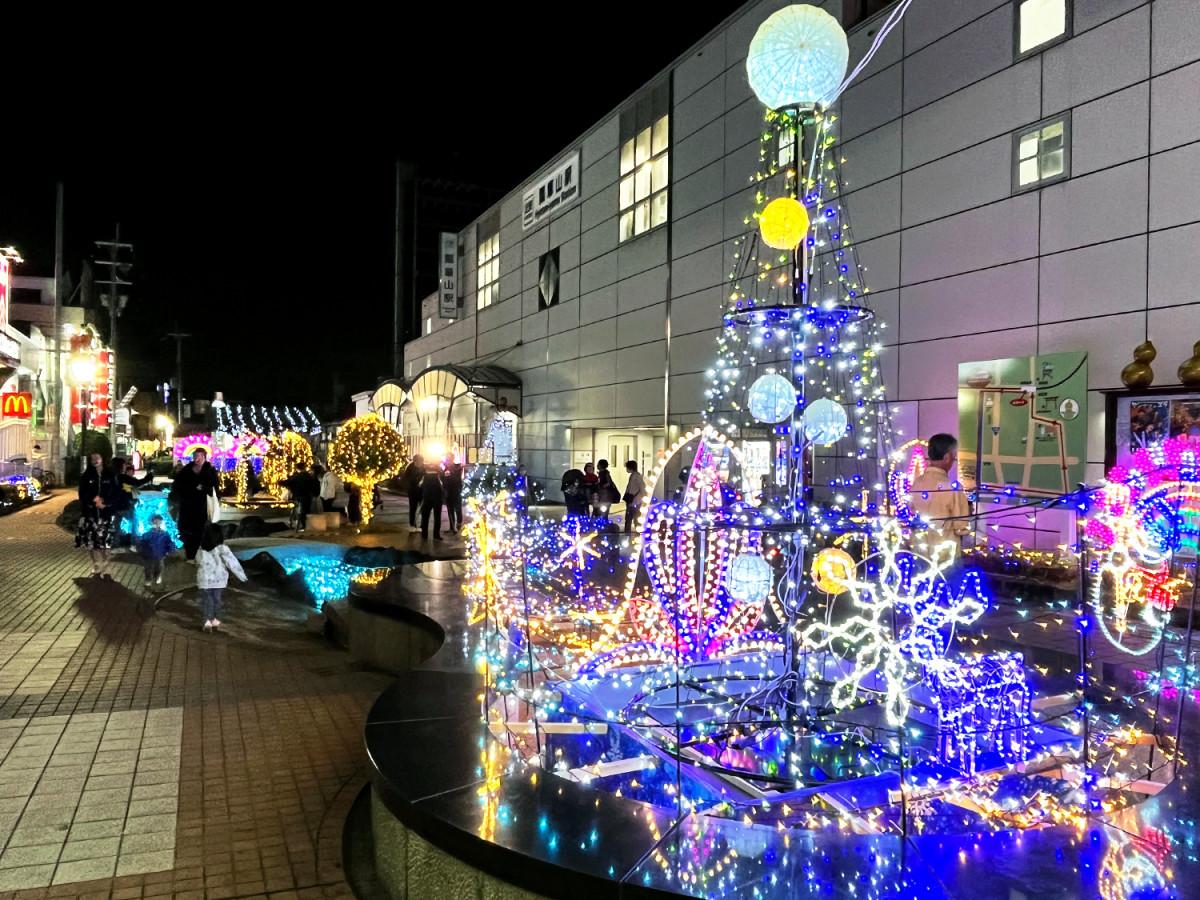 瓢箪山イルミネーション点灯式が11月10日、近鉄奈良線瓢箪山駅前のせせらぎ広場で行われた。