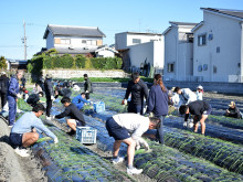 東大阪市の農業振興プロジェクト「東大阪『エコたま』チャレンジ」が始動し、11月22日、東大阪市内の畑でタマネギの苗植えが行われた。