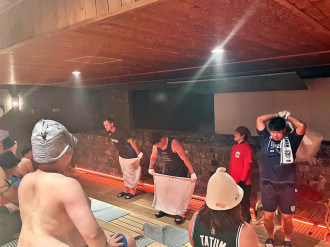 温浴施設「花園温泉 sauna kukka(サウナクッカ)」(東大阪市新町)で11月26日、ジャパンラグビーリーグワン「花園近鉄ライナーズ」(以下、ライナーズ)とのコラボイベントが行われた。