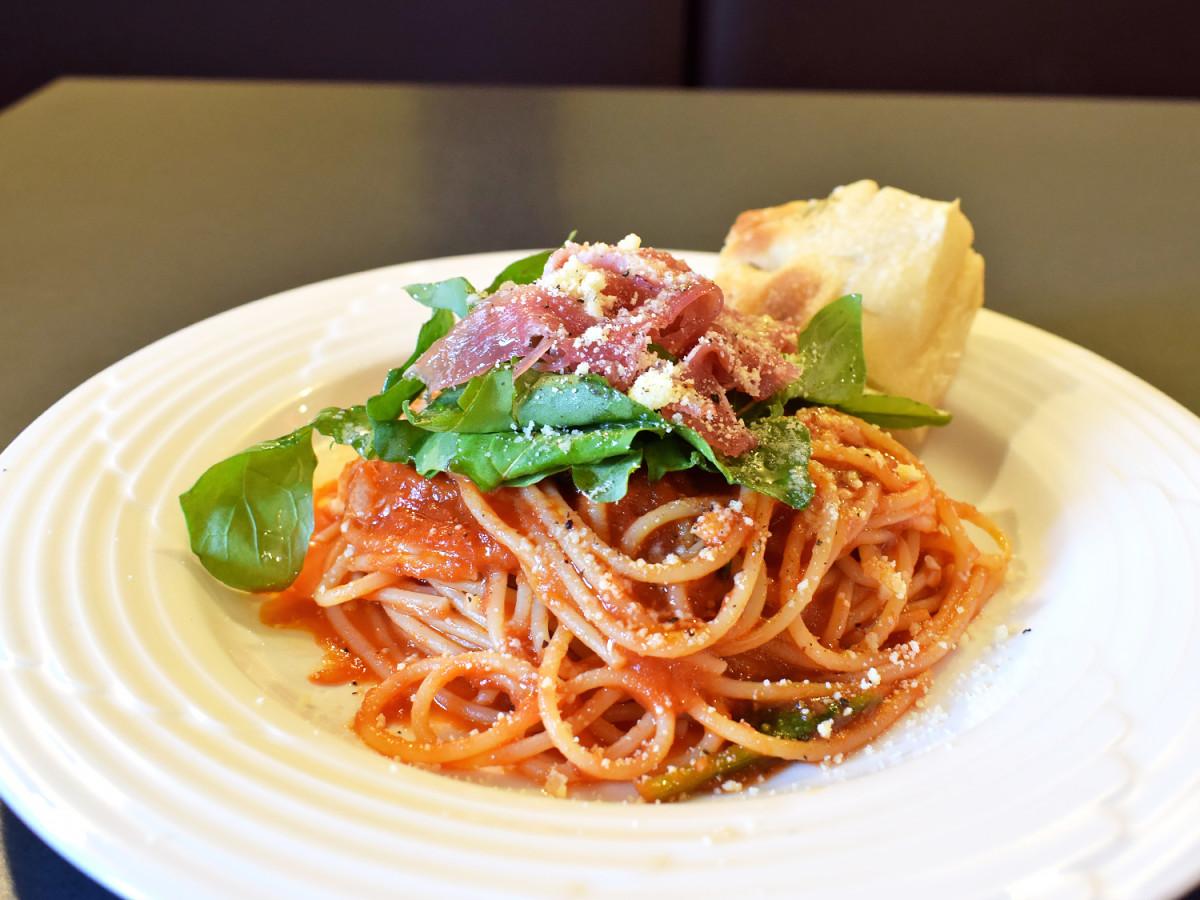 ランチメニューの「ワタリガニのトマトクリームパスタ」