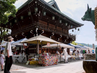 2017(平成29)年から3年間にわたり開催したものの新型コロナの影響で開催を見送ってきたが、同神社が今年、国登録有形文化財に登録されたこともあり、「子どもを主人公とする新しい神社のお祭り」「芸能神事としてのアーティストの表現の場所」として今年5月に再スタートを切った。5月は絵馬殿周辺を会場に小規模なマルシェスタイルとし、約500人が来場。今回は絵馬殿周辺に加え、本殿奥の北広場も会場として使う。