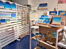 ハワイが好きだという松川さんは「いつかハワイで踊りたい」と5年前にフラダンスを習い始め、その後、レジンアート作品と出合い、レジンアートやサンドアートの教室に通って作品を作り始めた。海のレジンアート作品は松川さんが訪れたハワイや沖縄の海で得たインスピレーションを元に創作しているという。「ハワイは島によって色があるので、海の色はいろんな色を使っている。最初はハワイのリゾート感が好きだったが、フラを始めて文化や歴史などを学ようになり、ハワイ島の自然が気になるようになった」と話す。コースターから壁掛けタイプのものまで、さまざまなサイズの作品をそろえる。