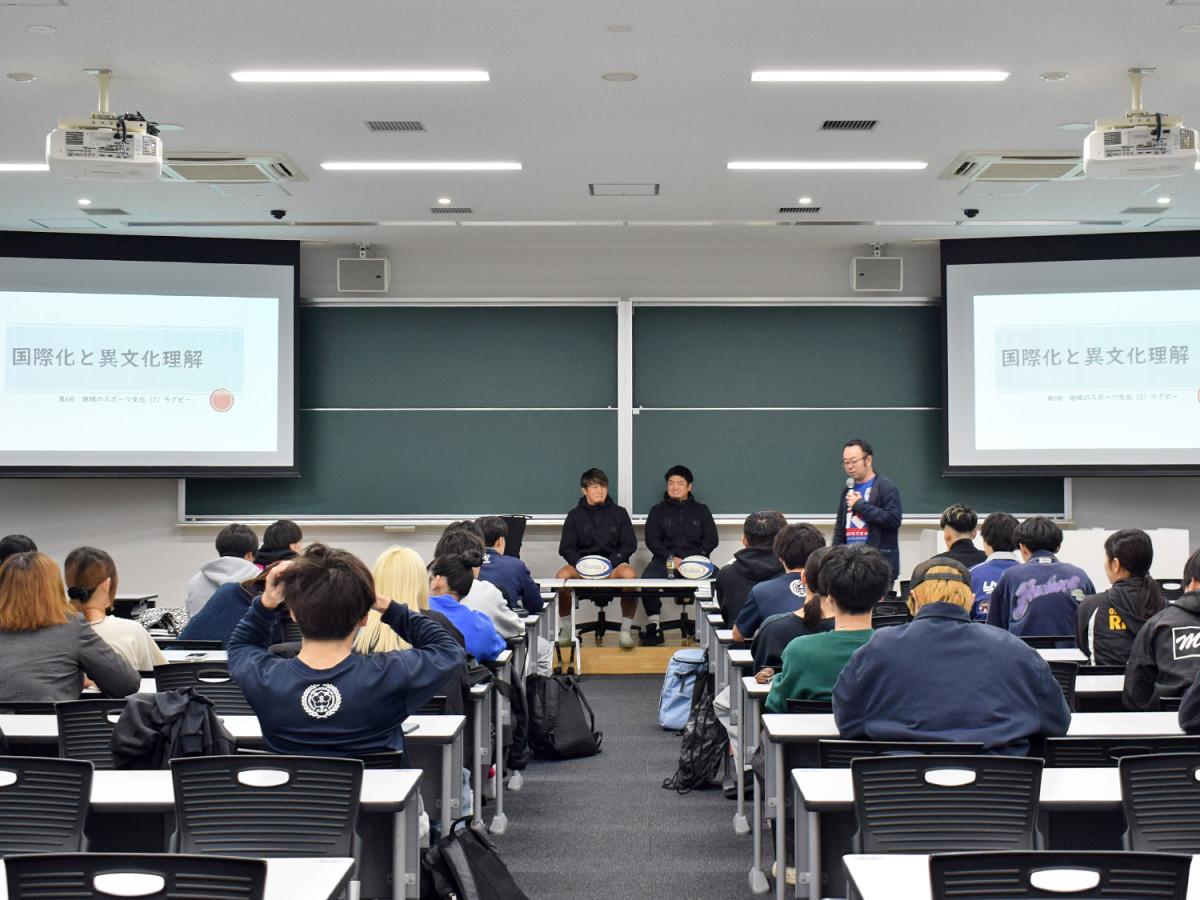 東大阪市、東大阪商工会議所、日本郵便の3者で、3年前から作製しているオリジナル年賀はがき。「市外、県外に出ていくものなのでPRするにはいい媒体」と、制作を続けている。初めの2年は市のマスコットキャラクター「トライくん」のイラストを描いたデザインだったが、昨年、同キャラクターの着ぐるみがリニューアルしたことから、市花園ラグビー場と「トライくん」の着ぐるみをあしらったデザインに変更。今年は、ラグビー場を背景にしたトライくんの着ぐるみに「モノづくり・ラグビーのまち 東大阪」の文字を載せたデザインとした。