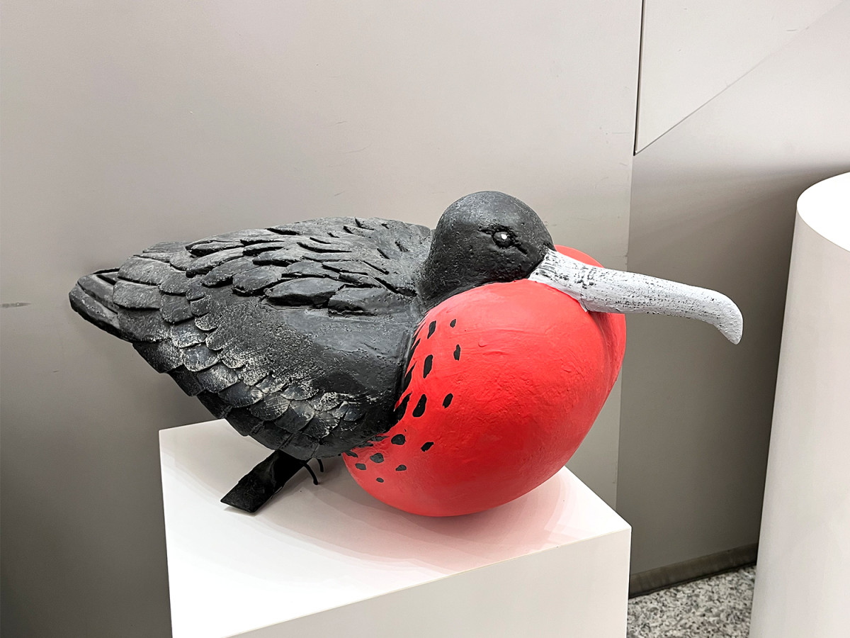 東大阪市役所本庁舎1階で10月31日、大阪・関西万博のナウル共和国パビリオンで使われた展示台「ナウル台座」などの展示が始まった。