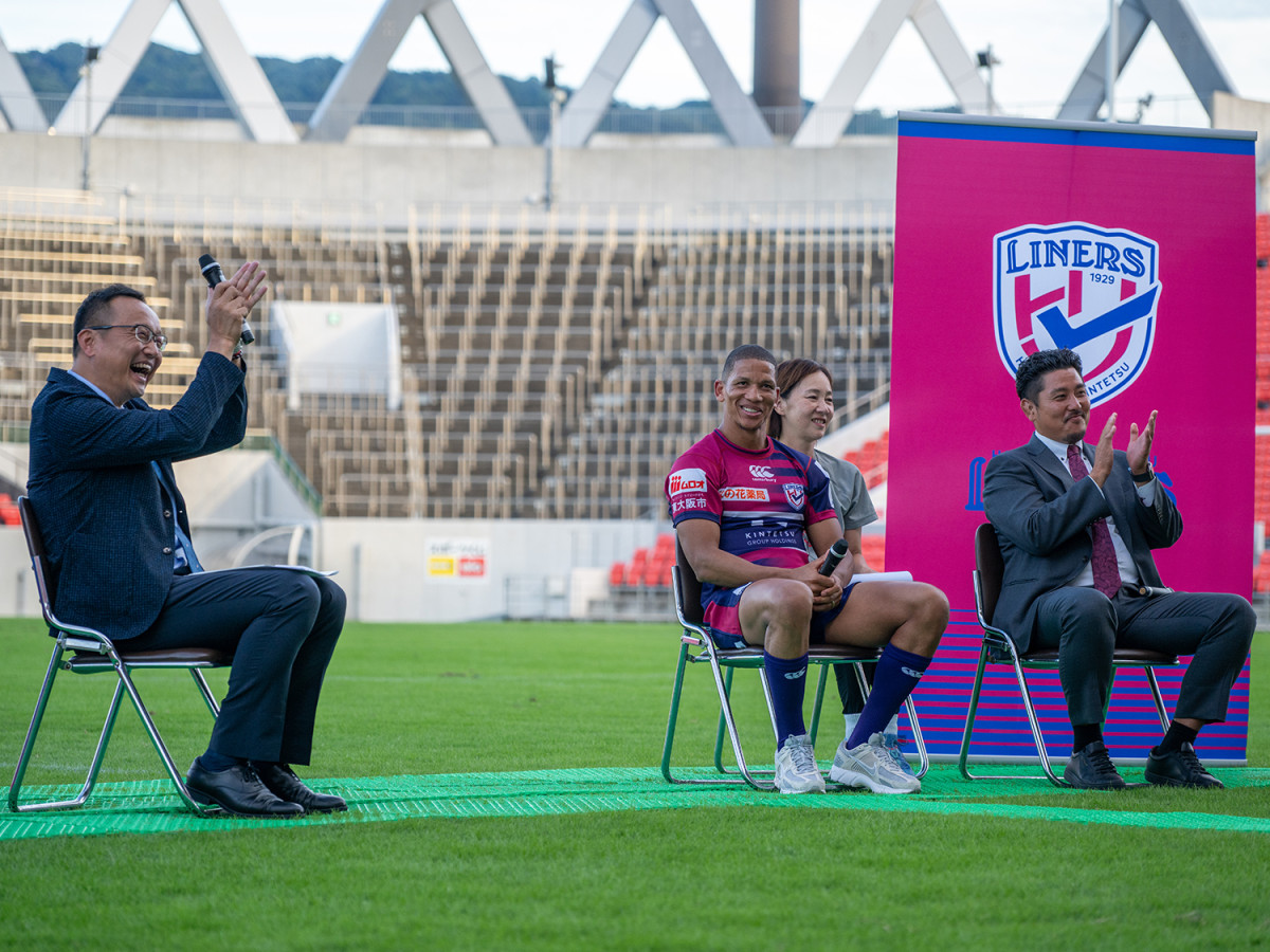 ジャパンラグビーリーグワン ライジング最終節の試合が10月11日、東大阪市花園ラグビー場(東大阪市松原南)で行われ、花園近鉄ライナーズがレッドハリケーンズ大阪に61-26で勝利した。