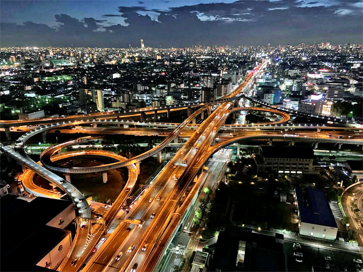 展望ロビーから眺める東大阪ジャンクションの夜景