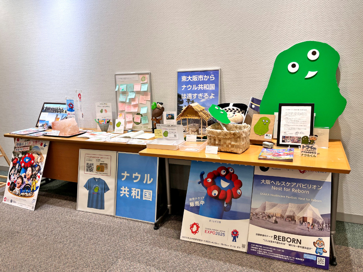 東大阪市役所本庁舎1階で10月31日、大阪・関西万博のナウル共和国パビリオンで使われた展示台「ナウル台座」などの展示が始まった。