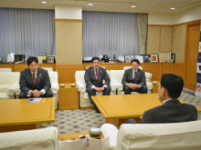 ジャパンラグビーリーグワン・ディビジョン2の花園近鉄ライナーズ(以下、ライナーズ)が12月19日、東大阪市役所を訪問し、野田義和東大阪市長に今シーズンの意気込みを語った。