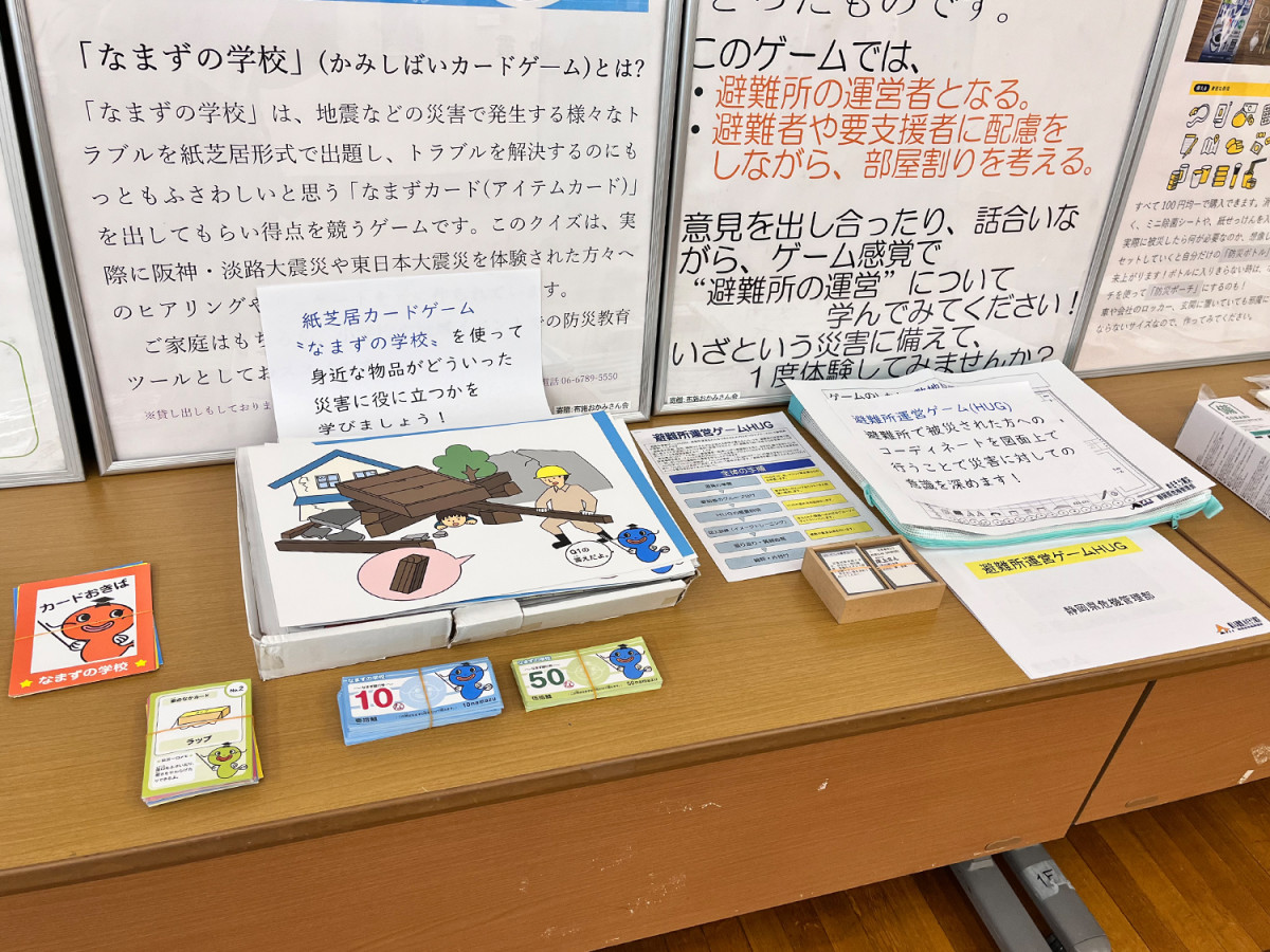 東大阪市役所本庁舎1階多目的ホールで1月15日、防災パネル展が行われた。防災学習に使うカードゲームや避難所運営体験ゲーム