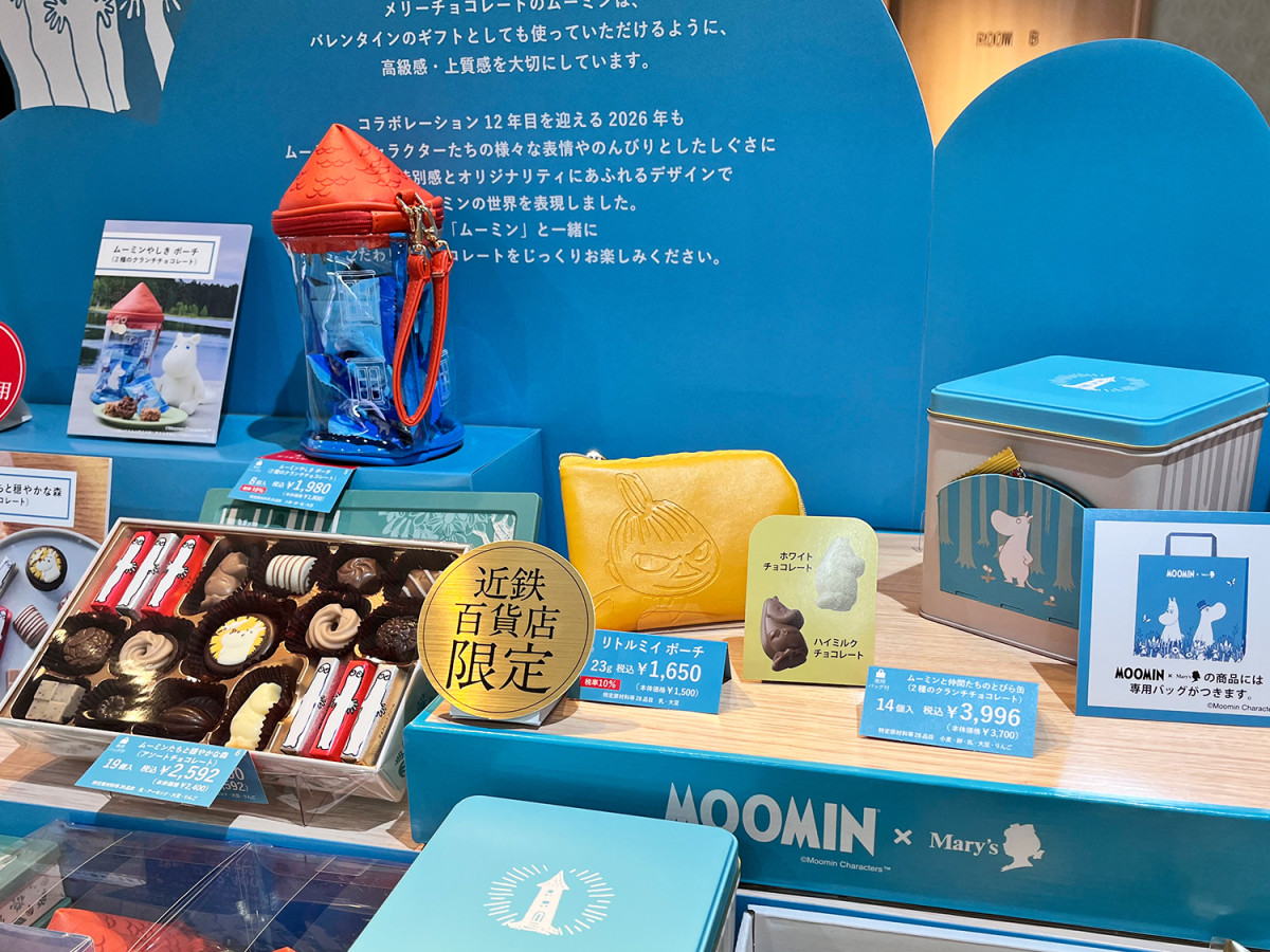 バレンタイン限定商品や近鉄百貨店限定商品が並ぶ「ムーミン×メリーチョコレート」