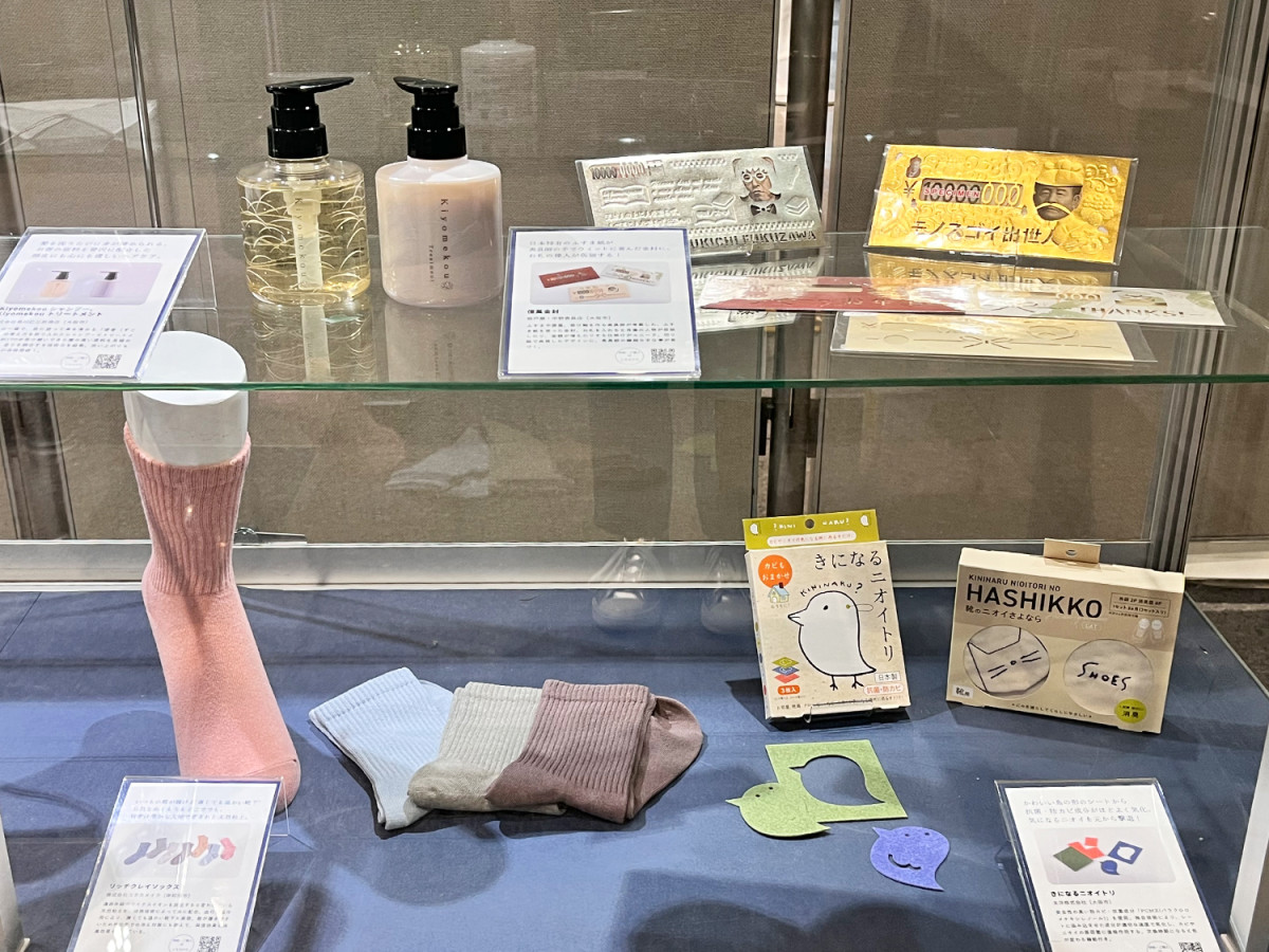2025年度の大阪製ブランド認定製品を中心に紹介する「大阪製ブランド製品展示会」が2月25日、大阪府立中央図書館1階展示コーナーで始まった。「kiyomekuシャンプー、トリートメント」「億萬金封」「リッチクレイソックス」「きになるニオイトリ」