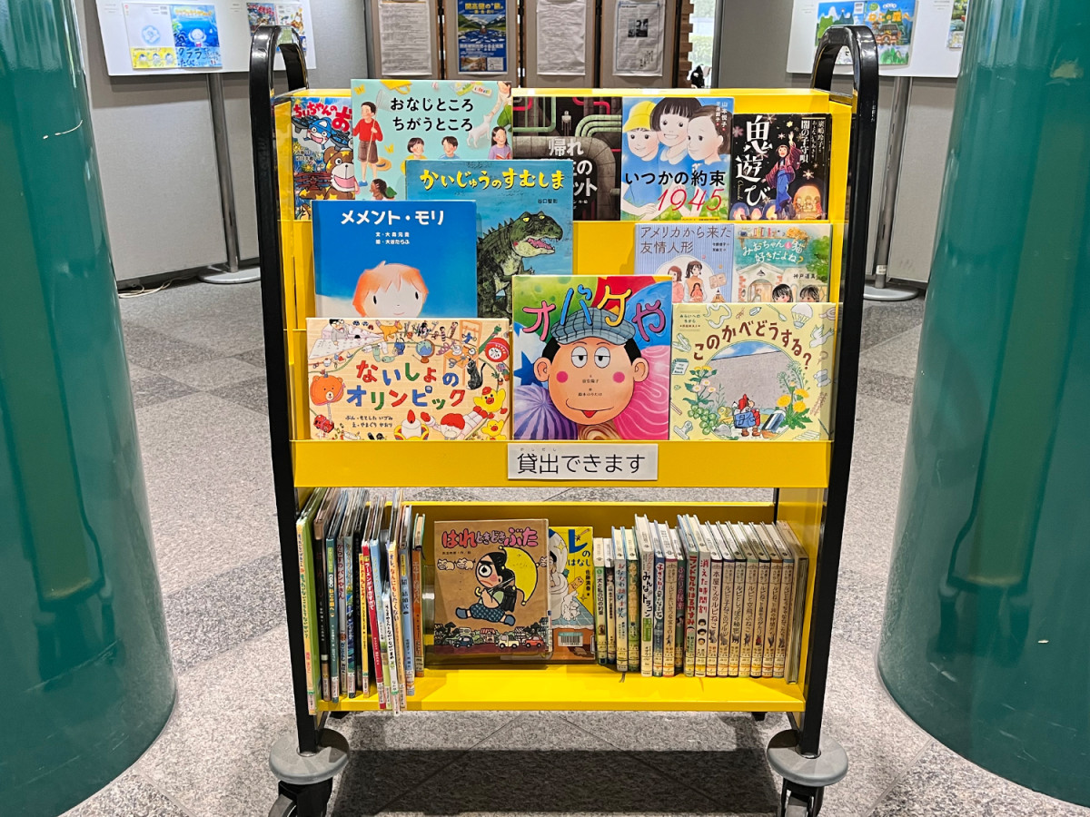 会場に受賞作品の題材になった絵本や児童書を集めた