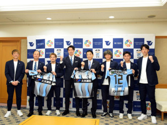 サッカーJ3「FC大阪」が2月6日、J2・J3百年構想リーグ開幕を前に東大阪市役所を訪問し、野田義和東大阪市長に意気込みを語った。