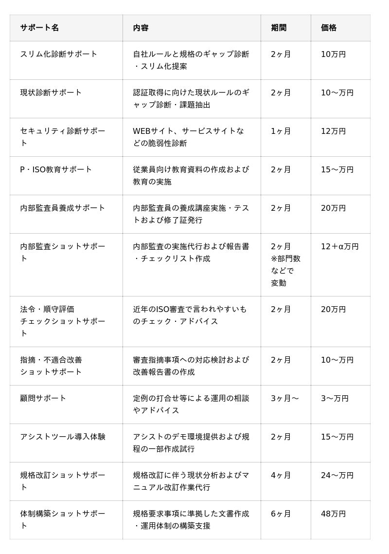 ・ISO/Pマーク運用をできるだけ自社で行いつつ、必要な部分だけ外注したい方