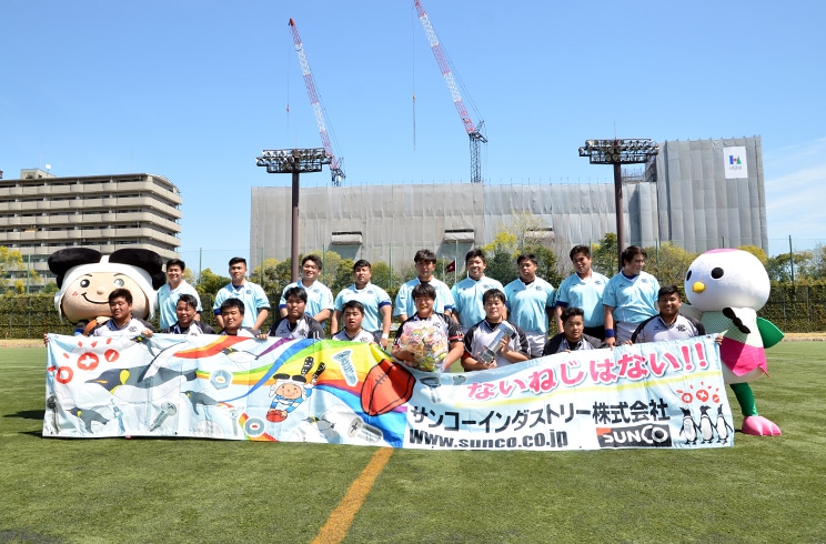 週ひがは近鉄ライナーズを中心にラグビー情報を多く扱う東大阪の地域メディア。関西ラグビーフットボール協会の広報業務も担う中、2018年シーズンの関西大学リーグのスポンサーになってもらえないかと取材を通じて知り合った奥山社長に打診した。週ひがの前田さんから「ラグビー選手はチームに帰属意識はあるが企業への帰属意識はあまりなく、社員選手で選手として終わったらドロップアウトしてやめてしまう」という話を聞いた奥山社長は、「弊社の物流センターも人手不足。スポーツ選手のセカンドキャリアの選択肢が少ないということとマッチングが図れるのでは。安心して選手生活に専念してもらい、その後にサンコーインダストリーという選択肢があると示したい」と、スポンサーになることを決めた。